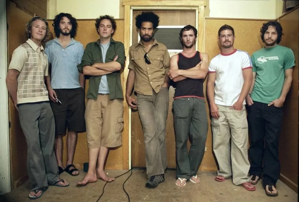 The Black Seeds, 2006. L-R Jarney Murphy, Bret McKenzie, Tim Jarray, Daniel Wheetman, Mike August, Barnaby Weir, Lee Prebble.